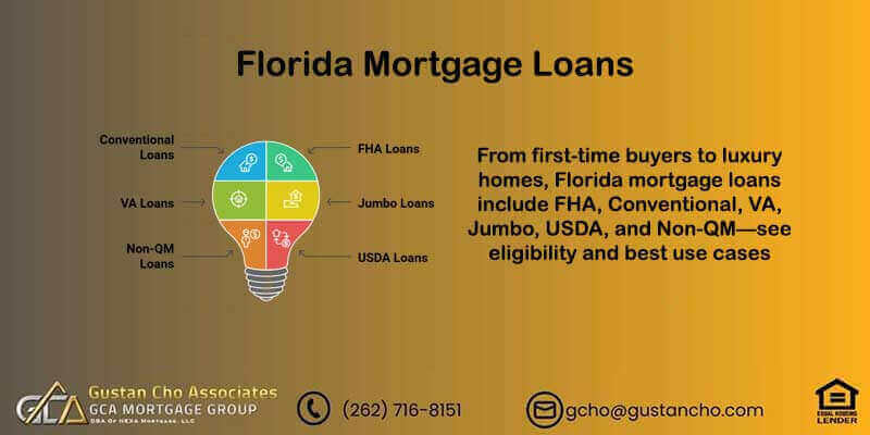 Explore comprehensive Florida mortgage loans, including FHA, VA, USDA, Conventional, Non-QM, and Jumbo options. Learn about down payment assistance, Florida Housing programs, and how to secure the best rates for first-time home buyers in the Sunshine State.
